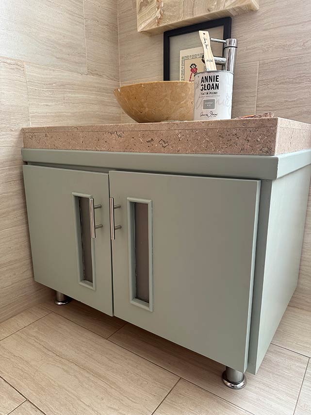 Con la aplicación de la Chalk Paint™ y un sellado con ceras protectoras, los gabinetes pasaron de desgastados a modernos, sin necesidad de lijar o imprimar.