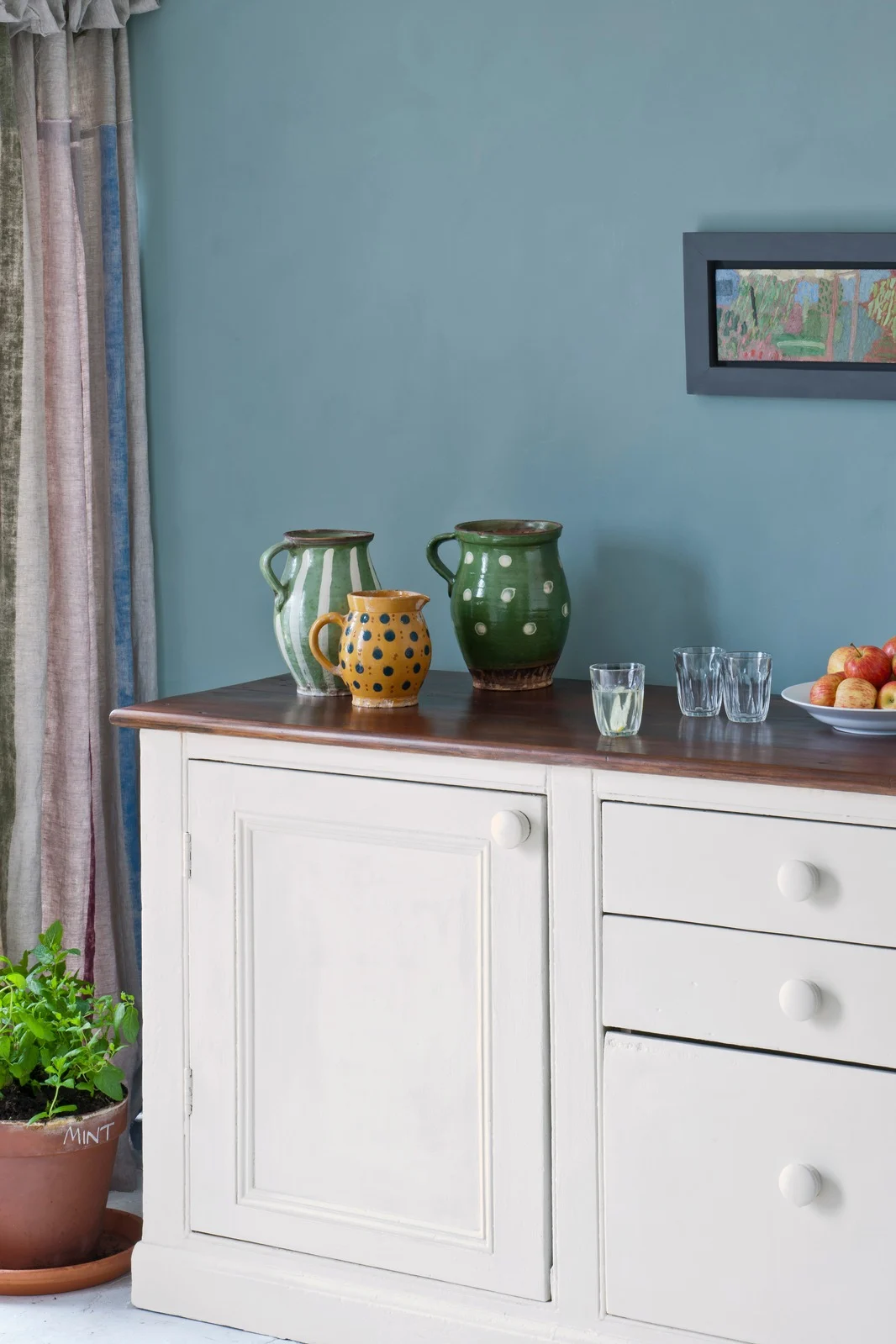 Lo que antes era una cocina oscura y sin vida, se transformó en un espacio lleno de frescura y luz gracias al color Duck Egg Blue de Annie Sloan.